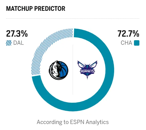 开云-ESPN预测明日比赛:独行侠胜率27.3%,黄蜂胜率72.7%